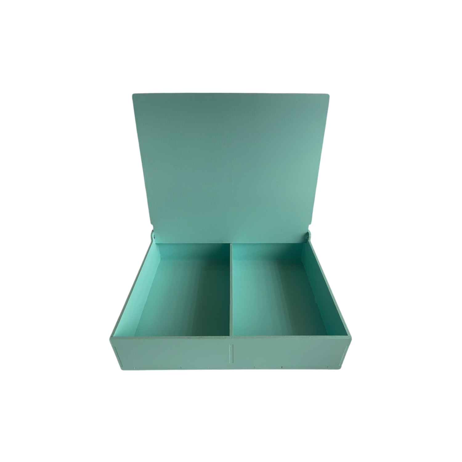 El interior cuenta con dos compartimentos, ideales para guardar y organizar fotografías, recuerdos, cartas o pequeños objetos personales. Gracias a su acabado con pintura acrílica y laca protectora, la pieza ofrece una excelente durabilidad y un acabado elegante.