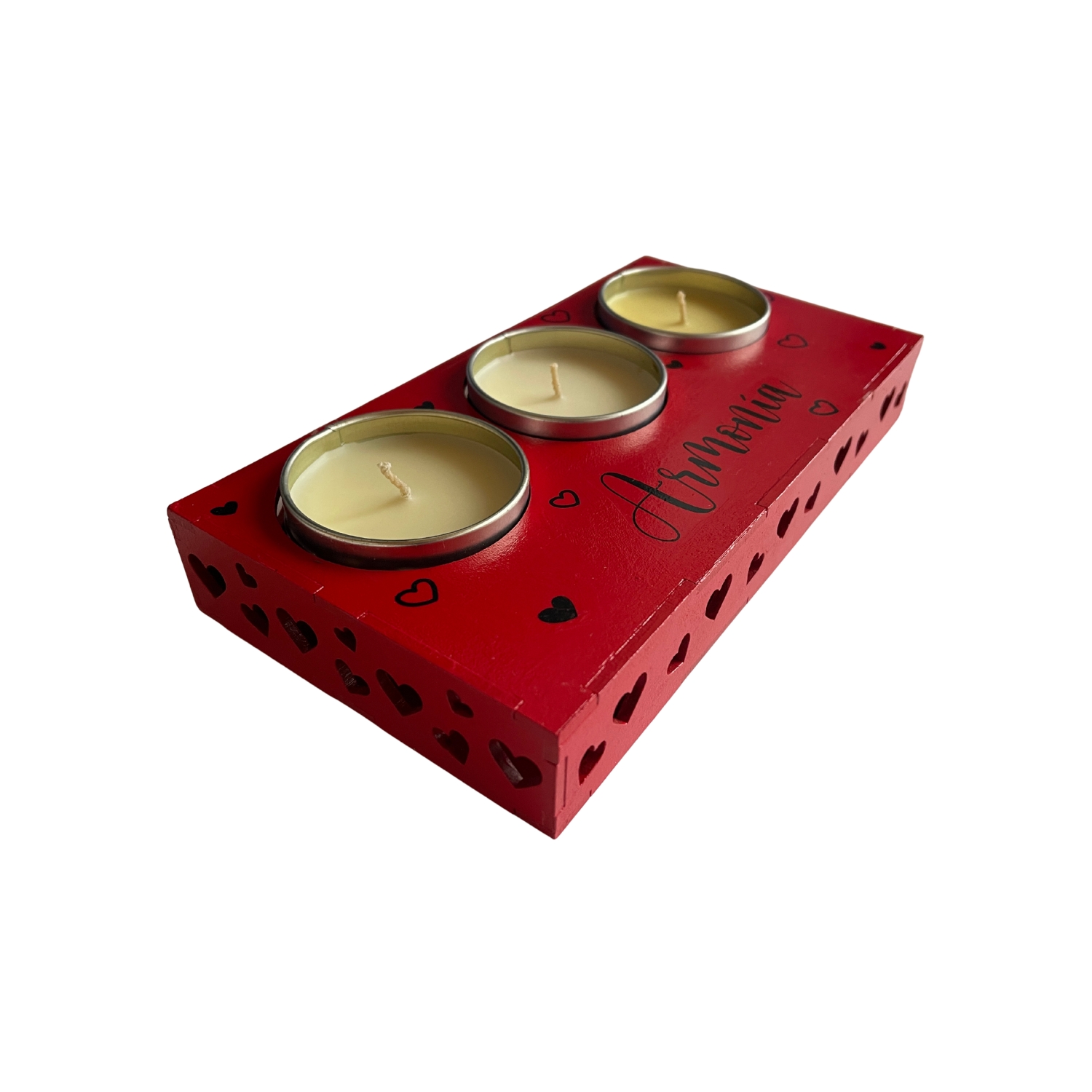 Hermoso portavelas elaborado en madera MDF, diseñado para aportar calidez y estilo a cualquier espacio del hogar.